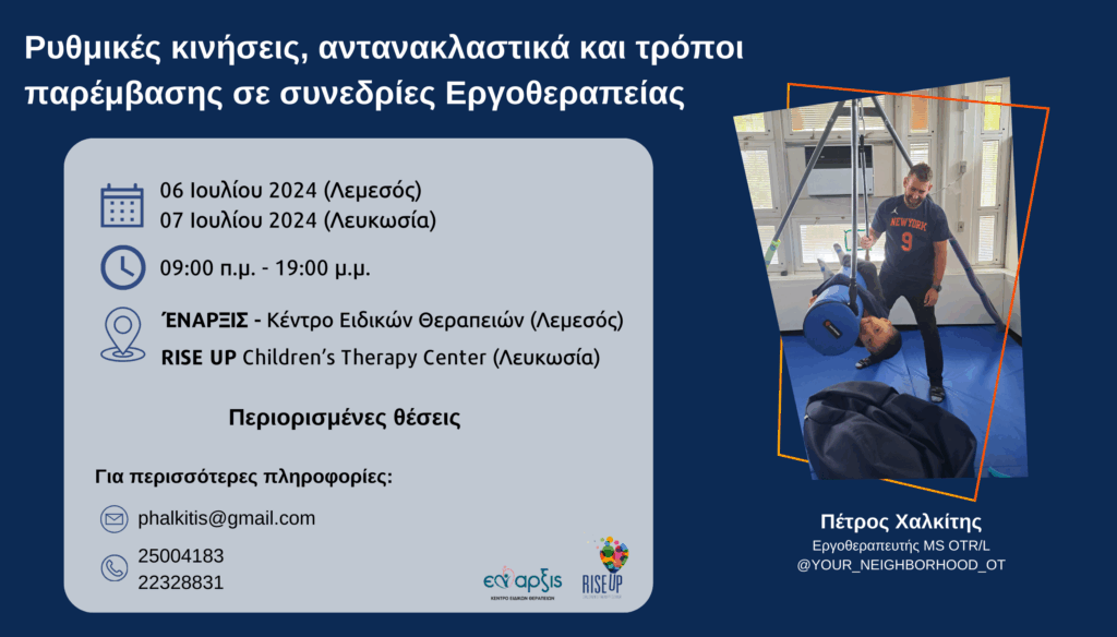 Date 07/07/2024 Time 9:00-19:00 Location Δια Ζώσης Entrance fee 07/07/2024 CLICK HERE TO SAVE YOUR SPOT 🤔 Έχετε σκεφτεί ποτέ γιατί τα παιδιά δυσκολεύονται να παραμείνουν στη θέση τους, γιατί διασπάται η προσοχή τους, γιατί δεν μπορούν να διατηρήσουν την κατάλληλη θέση κατά τη διάρκεια της γραφής ή γιατί δυσκολεύονται να αντιγράψουν από τον πίνακα; […]